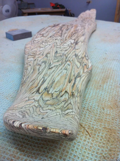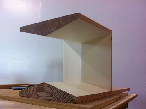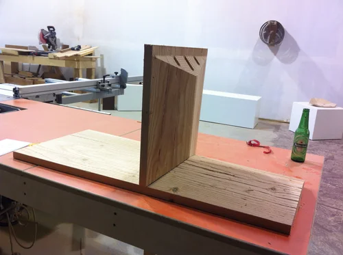 A coffee table that one day will serve as the genesis for a house perched on a cliff overlooking the ocean.