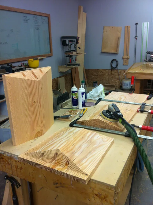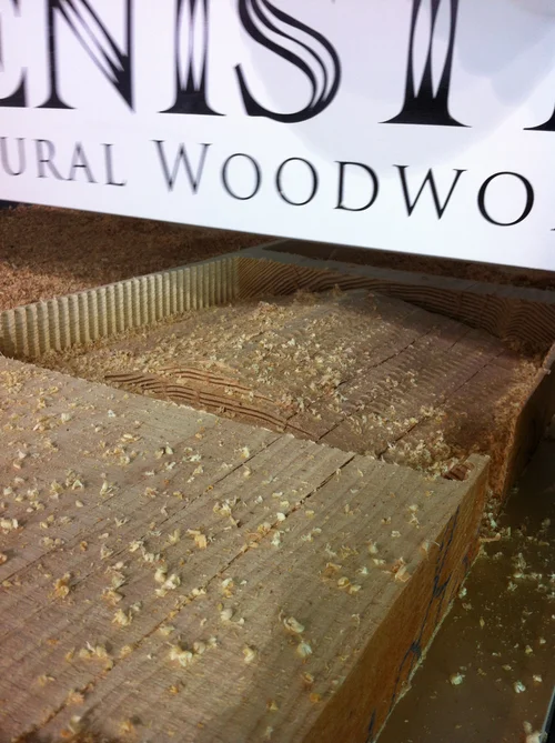 A seat, sculpted by CNC router, to be exhibited as part of a multi-artist collaborative swing set for Buildex 2014.