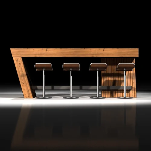 A wine tasting bar, conceptualized for the grotto-like wine room in the Copponex farmhouse.